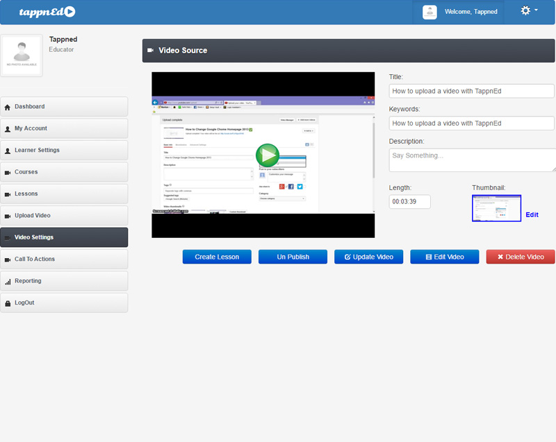 From the Video Source page, Educators are able to replace and/or update the video or a video's thumbnail, this is done by the Educator clicking on either the "Update Video" or the "Edit Video" buttons.