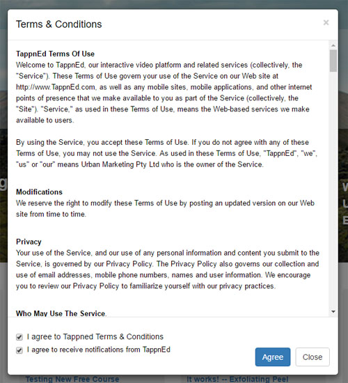 When you have chosen your TappnEd account type you will be prompted to read and agree with the TappnEd Terms of Use.