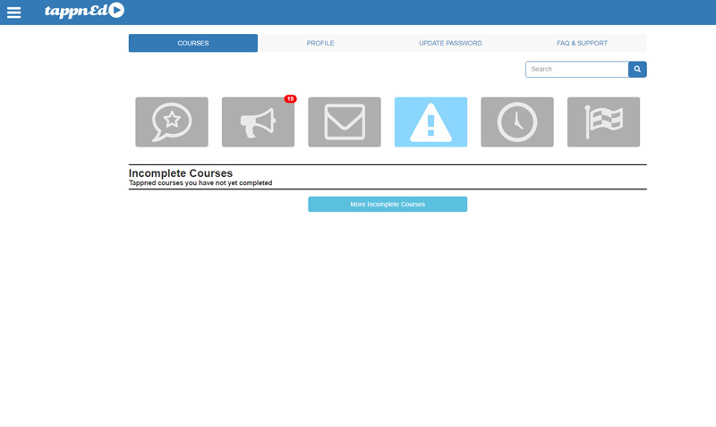 Courses that a Learner has started and not yet completed due to loss of internet connectivity, loss of power, or interrupted for any reason will appear within the Incomplete Courses Section.