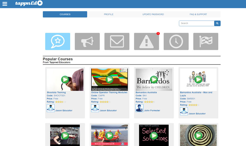 The Popular Course section shows which courses are currently popular and have been participated in by other TappnEd Learner accounts. The courses are sorted from most popular in the top left corner down to the bottom right corner.
