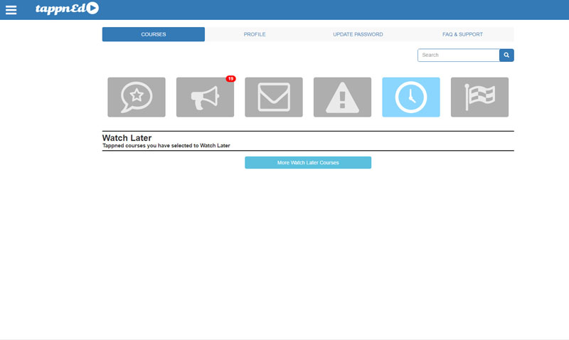 If at any time a Learner clicks on the "Watch Later" icon on a Course's Holding page the Course will be moved to the Learner's Watch Later section, waiting for the Learner to start the course at a more appropriate time.